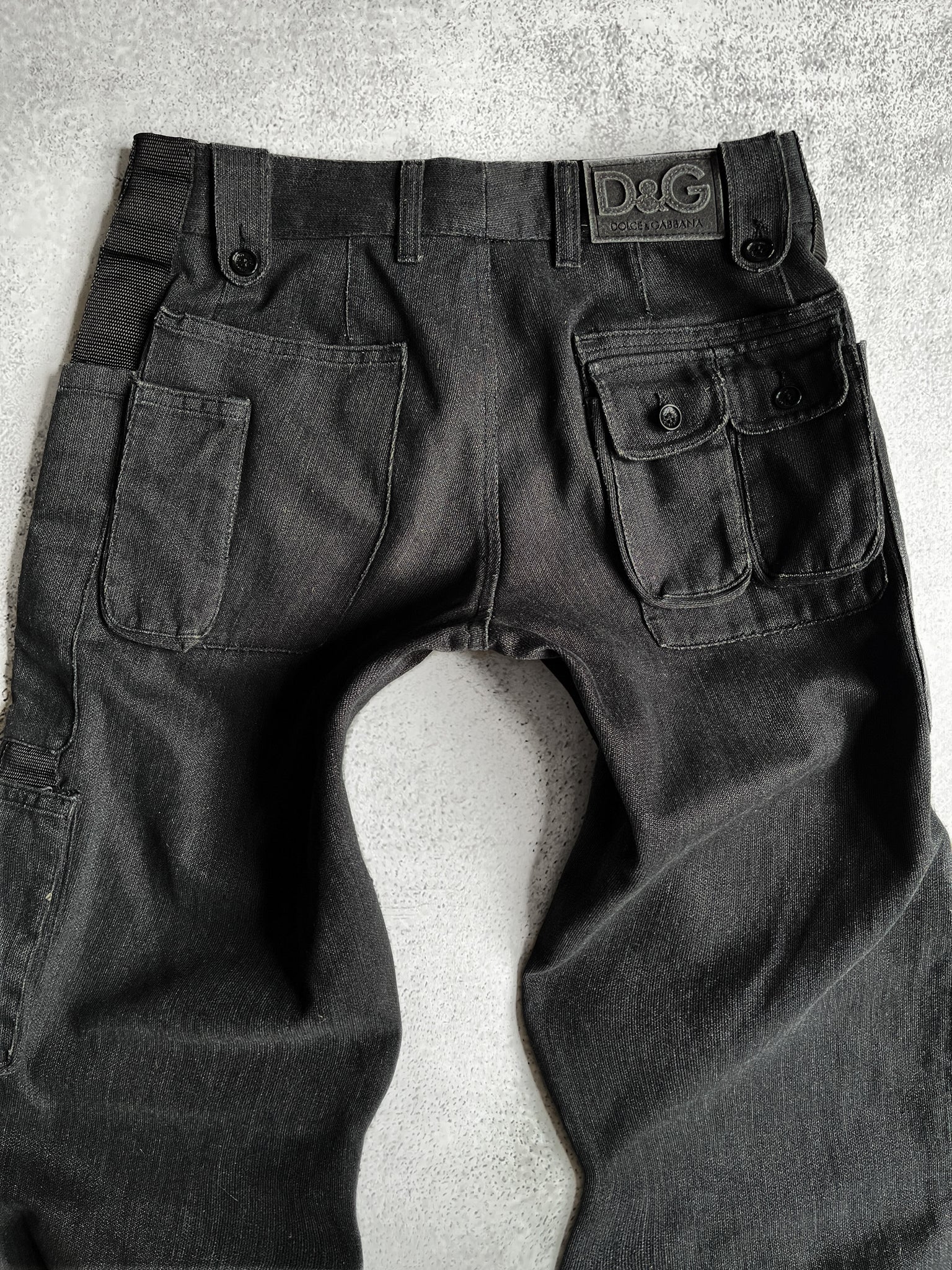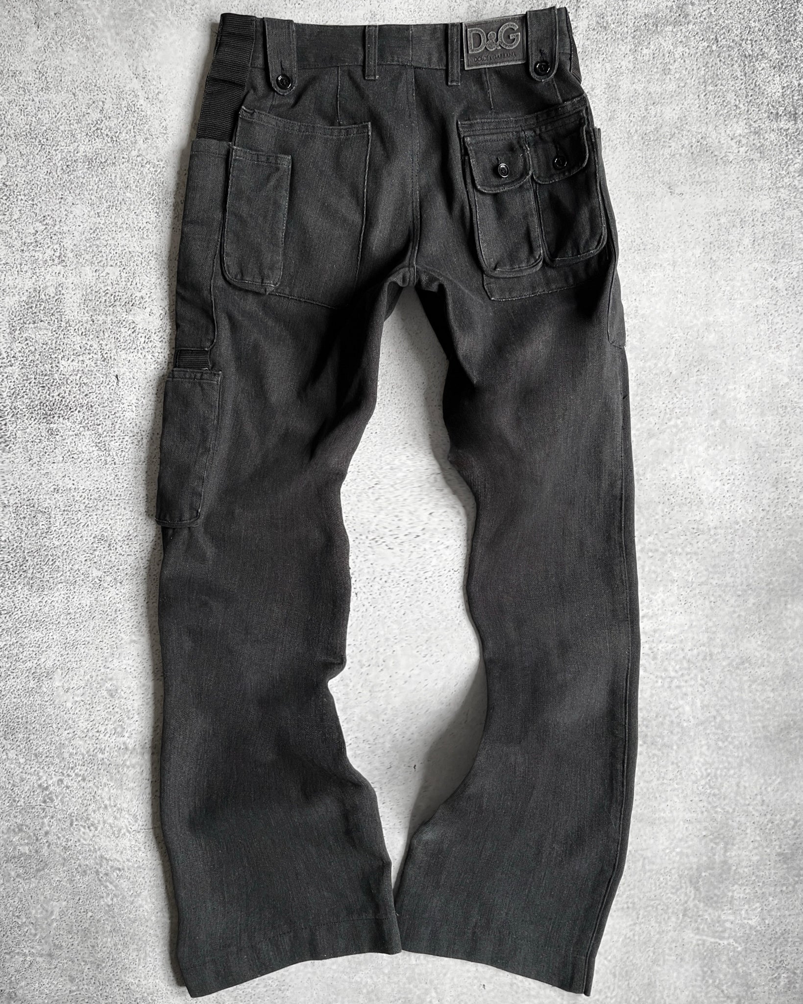 Dolce & Gabbana’s autumn winter 2003 collection reimagined masculinity through subculture-infused military wear, using reconstructed cargo pieces like canvas-bag trousers with straps, chains and hardware to blend bondage, punk and techno influences. The result was a sexually charged, androgynous take on utilitarian clothing that marked a major shift in early 2000s menswear.