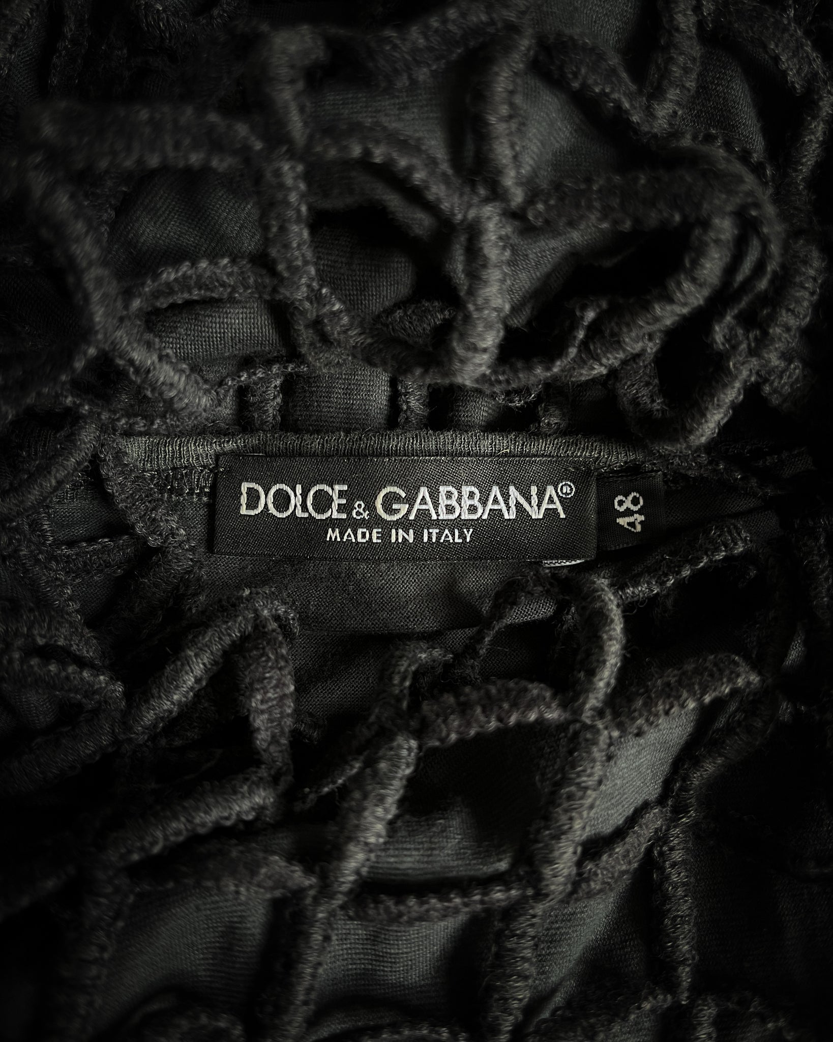 Netting defined Dolce's Spring Summer 2012 collection. The runway featured a number of tops, bottoms, outerwear and accessories all constructed of fabric and leather in a mesh style.