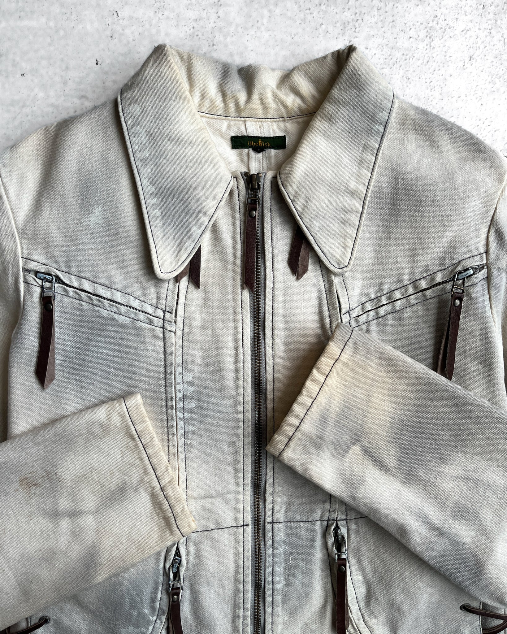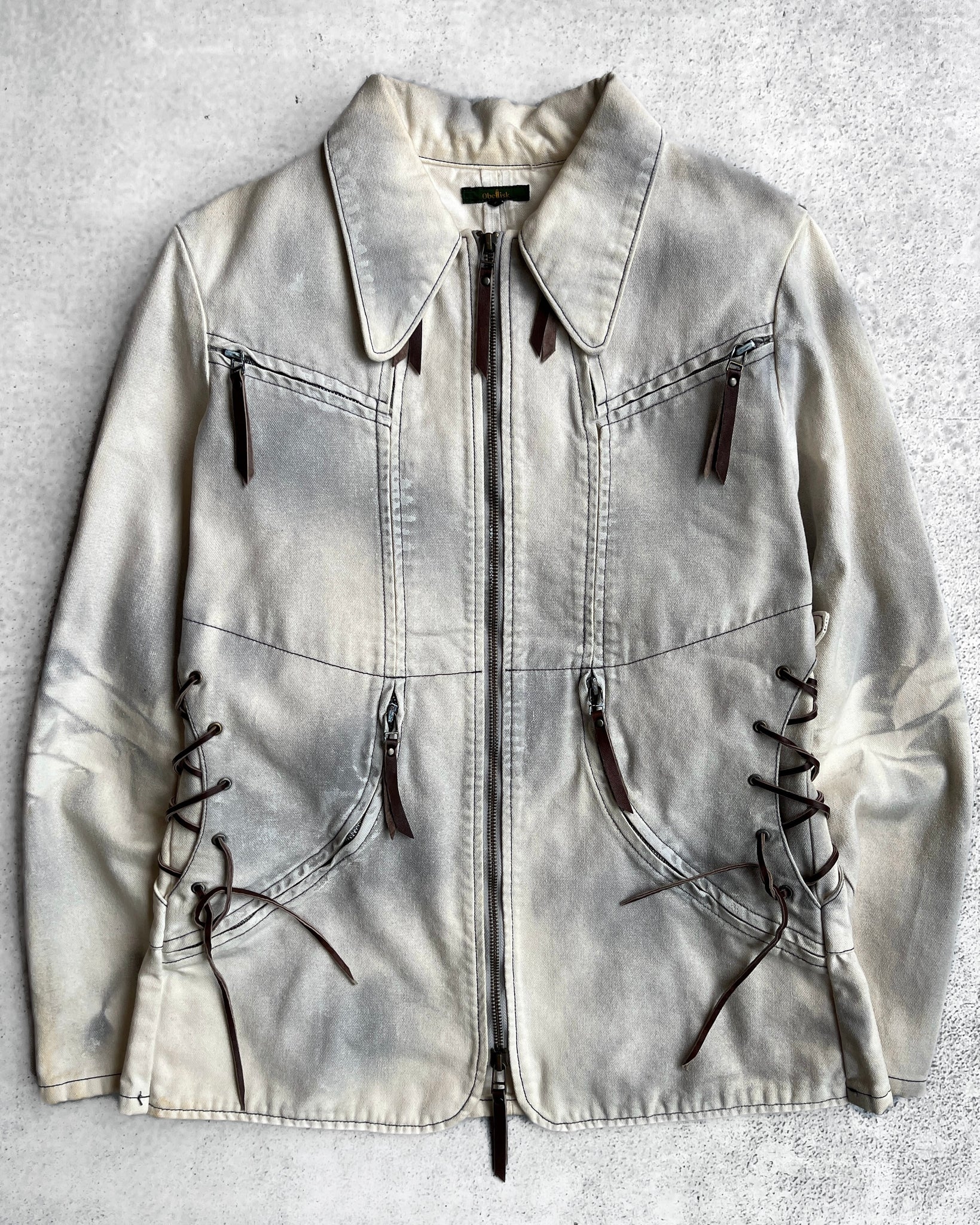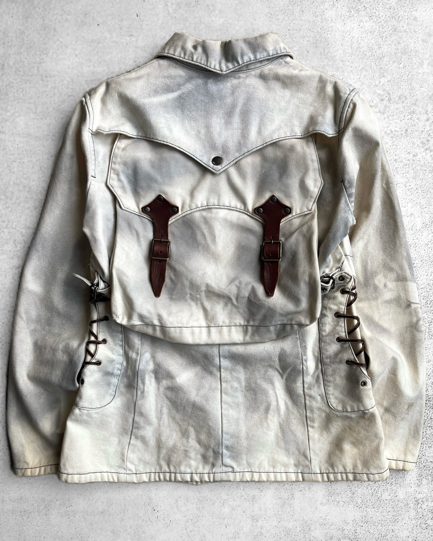 This washed cotton jacket from Obelisk features a removable backpack, and cowhide lace-up detailing allowing you to adjust the fit.